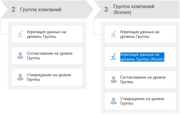 Примечание. При перемещении шагов учитывается их последовательное или параллельное выполнение. Если два шага выполнялись параллельно, то при изменении последовательности в пределах этапа параллельное выполнение изменяется на последовательное и наоборот.  При перемещении шага в другой этап по умолчанию применяется параллельный шлюз.