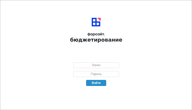 Для входа в веб-приложение «Форсайт. Бюджетирование» введите имя пользователя и пароль в соответствующие поля и нажмите на кнопку «Войти».