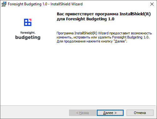 устанавливает файлы серверной части «Форсайт. Бюджетирование»;