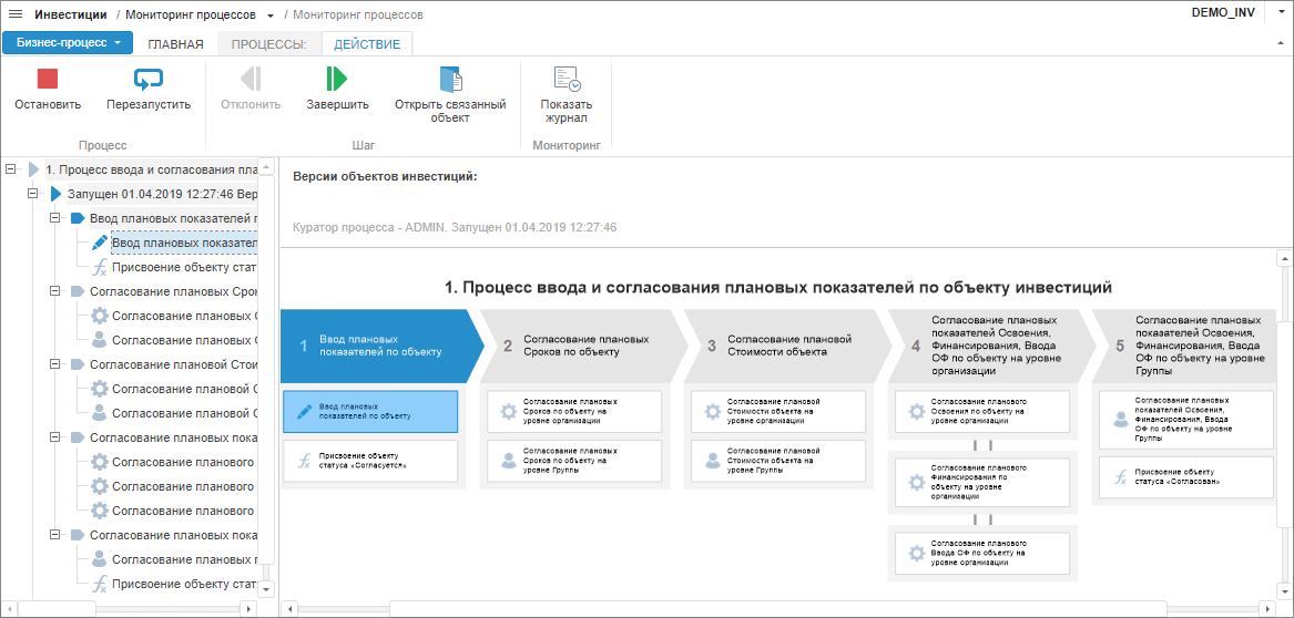 В преднастроенной конфигурации настроен автоматический запуск процессов ввода и согласования данных после создания новой версии объекта инвестиций, версии проекта или программы: