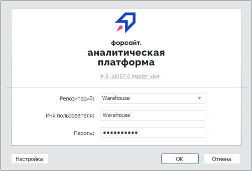 настольное приложение откройте с помощью команды «Форсайт. Аналитическая платформа 9 > Форсайт. Аналитическая платформа 9», расположенную в меню Windows;