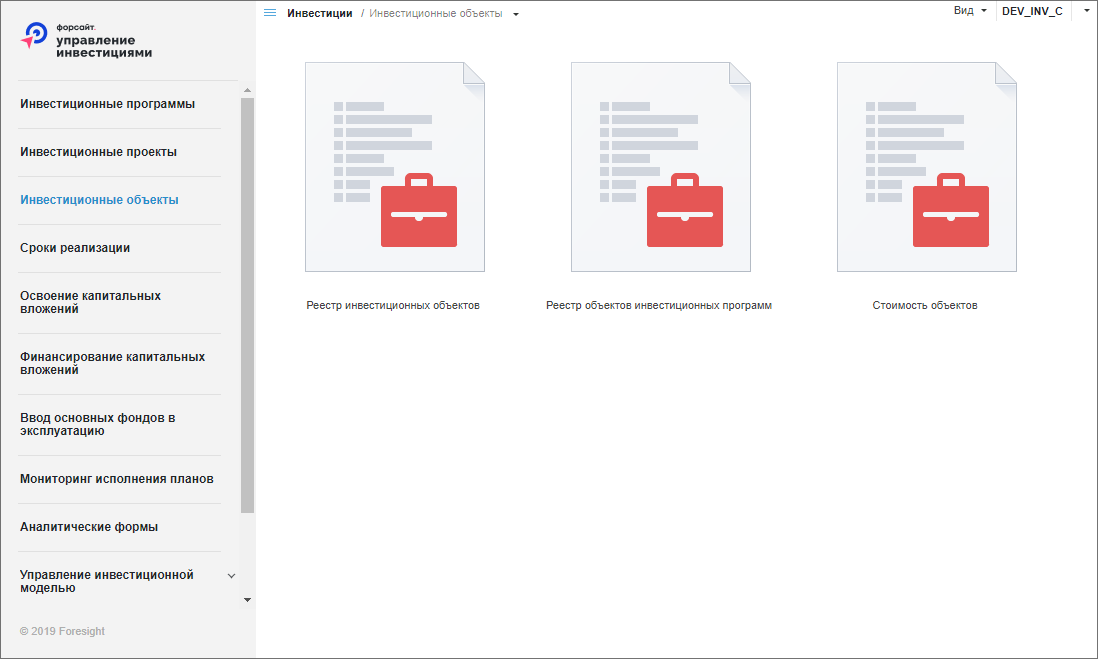 в настольном приложении будет открыто окно расширения «Конструктор бизнес-приложений» на отдельной вкладке системного навигатора, в котором выполняется настройка объектов инвестиционной модели;