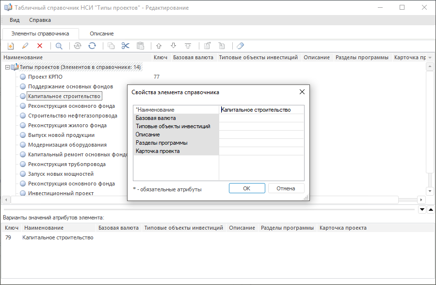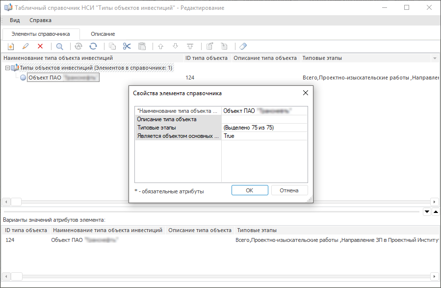 Объект инвестиций. Определяет физические характеристики объекта инвестиций и его плановые и фактические показатели расходной части: продолжительность и даты начала/окончания этапов реализации, затраты по статьям/этапам/периодам, объёмы освоения, финансирования и ввода основных фондов. Объект инвестиций согласуется в разрезе групп показателей.