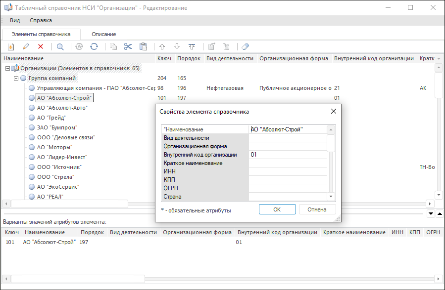 Справочники. Наборы значений определенной тематики, используемые для формирования аналитик и показателей модели, определения значений параметров объектов модели;
