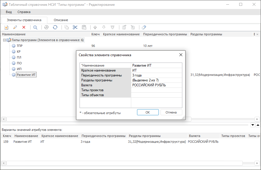 Для удобства работы со списками элементов реализованы реестры программ, проектов и объектов, которые формируются в зависимости от заданных параметров.
