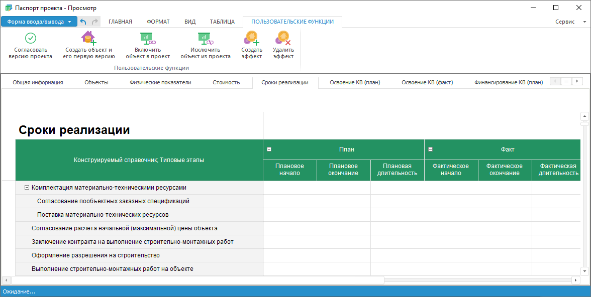 Для создания нового проекта в реестре проектов выполните команду «Создать проект» на вкладке «Пользовательские функции» ленты инструментов. В результате откроется пустая карточка проекта.