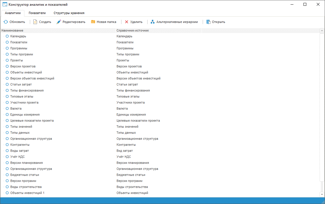 В состав преднастроенной конфигурации программного продукта входят готовые аналитики, не требующие дополнительной настройки. Преднастроенные аналитики размещены в папке «01. Справочники > 07. Аналитики» настольного приложения продукта.