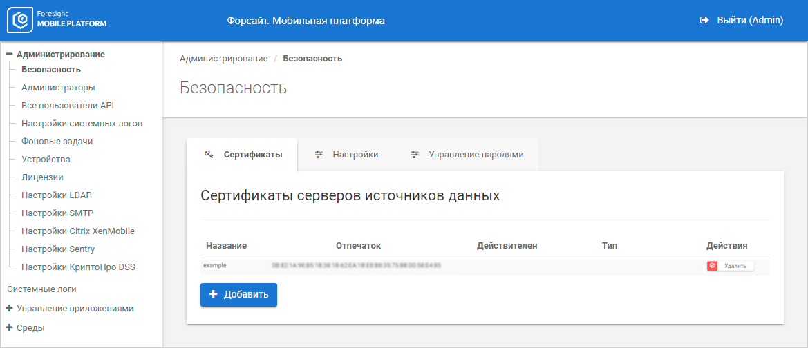 Администрирование и контроль доступа | Добавление сертификатов шифрования