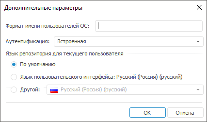 Для настройки подключения к репозиторию и работы с ним используйте диалоговое окно «Параметры» или задайте настройки платформы из файла.