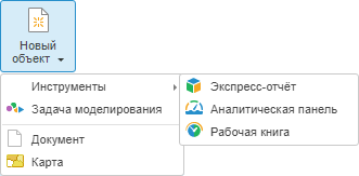 Настройки для определения структуры раскрывающегося меню кнопки  «Новый объект» в веб-приложении.