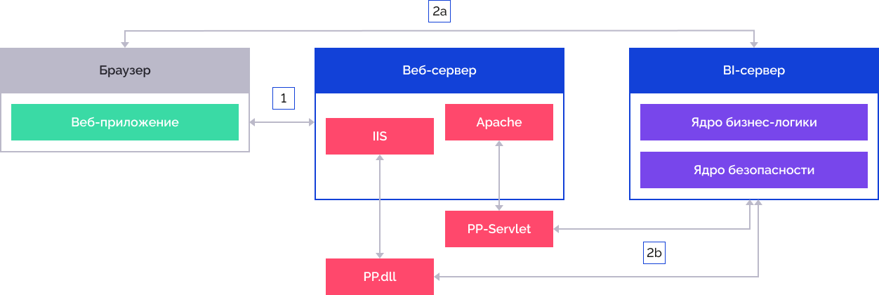 Если задан раздел <proxy>, то все запросы идут на PPService.axd и далее перенаправляются на BI-сервер. Учитывайте особенности, которые определяются типом используемого веб-сервера.