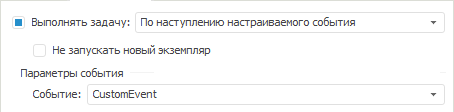 При выборе варианта «По наступлению настраиваемого события» задача будет выполняться при наступлении пользовательского события, которое вызывается из кода Fore. На вкладке «Расписание» будет доступен выбор пользовательского события: