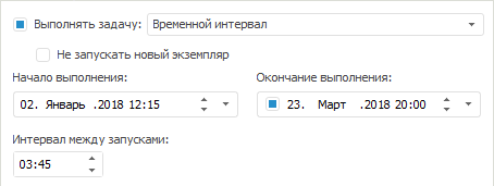 Окончание выполнения. Установка данного флажка позволяет задать время и дату последнего выполнения задачи. По умолчанию настройка не активна.