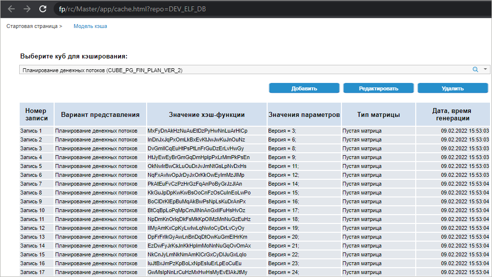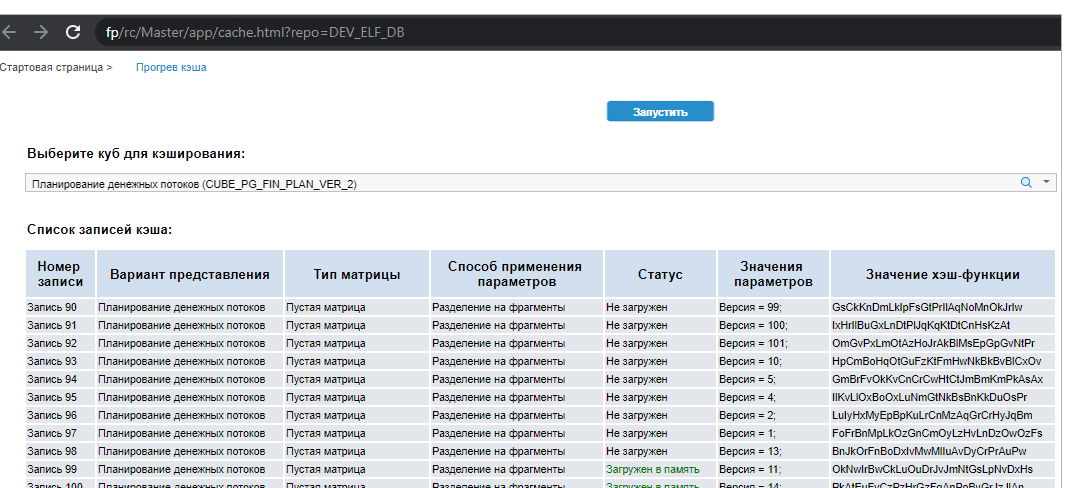 После выполнения действия будет открыта вкладка «Модель кэша»: