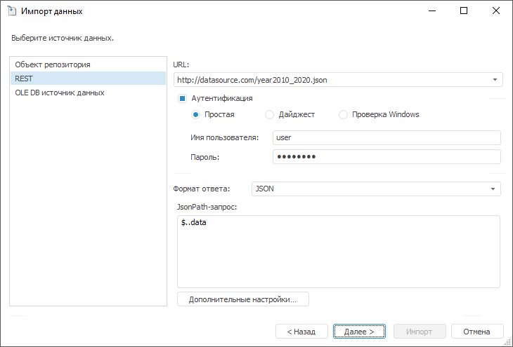 и XML). Если для подключения к REST-сервису требуется аутентификация