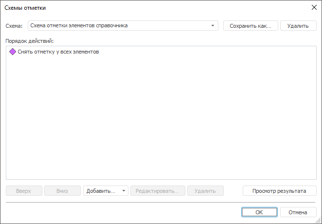 Примечание. Для справочников НСИ работа ведется только с основными элементами справочника. При этом отсутствует возможность создания схем отметки на элементах альтернативных иерархий, установленных по умолчанию.