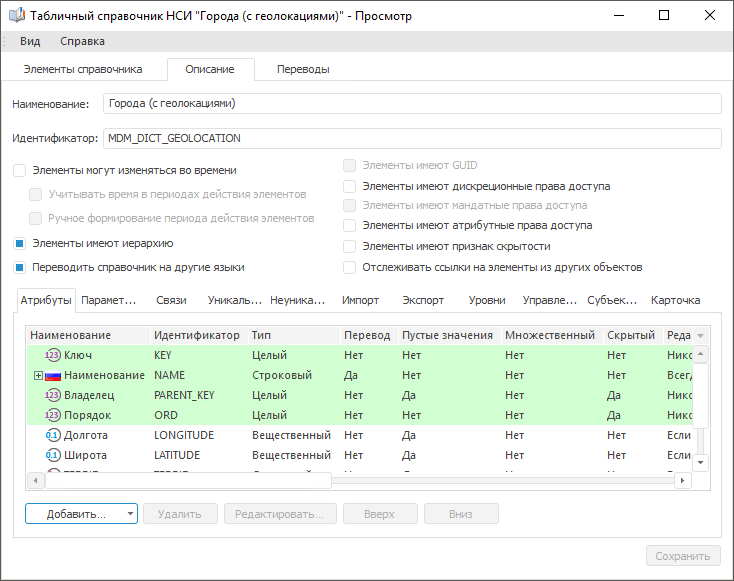 Для настройки структуры справочника смотрите статью «Настройка структуры справочника».