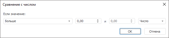 Задайте условие сравнения значений временных рядов. Используйте группу параметров «Если значение». Укажите следующие параметры: