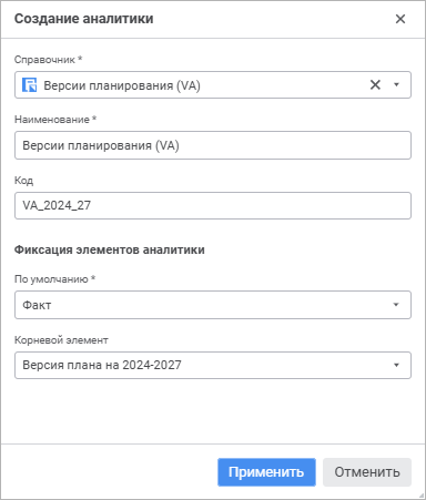 Для задания параметров аналитики бюджетной модели используйте окно «Создание аналитики»/«Свойства аналитики».