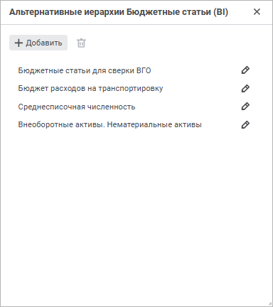 Для создания и редактирования альтернативных иерархий аналитик используйте окно «Альтернативные иерархии».
