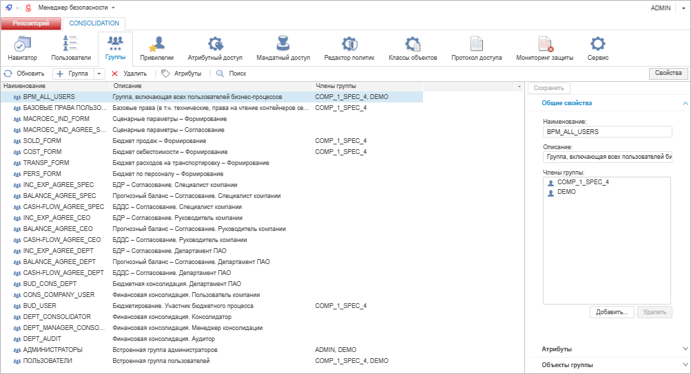 Настройка ролевой модели применяется для разграничения доступа пользователей к объектам и процессам бюджетной модели и модели консолидации.