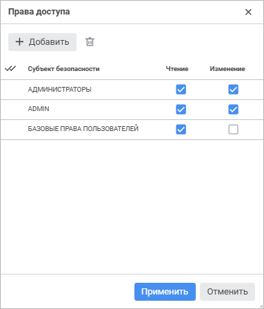 Для установления статических прав только на чтение для группы пользователей «Базовые права пользователей» на данные структуры хранения: