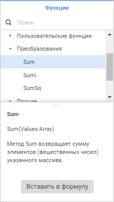 Примечание. Настройка агрегации доступна, если выбран один элемент в дереве или элементы дерева, относящиеся к одному измерению.
