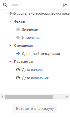 В раскрывающихся списках отображаются все имеющиеся в кубе справочники.