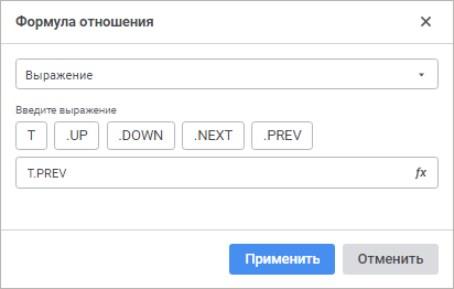 После выполнения одного из действий будет открыто окно «Формула отношения»: