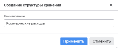 Задайте наименование создаваемой структуры к окне «Создание структуры хранения»: