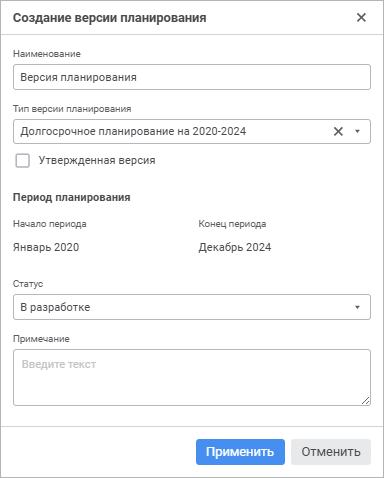 окна «Создание версии планирования»/«Редактирование версии планирования»
