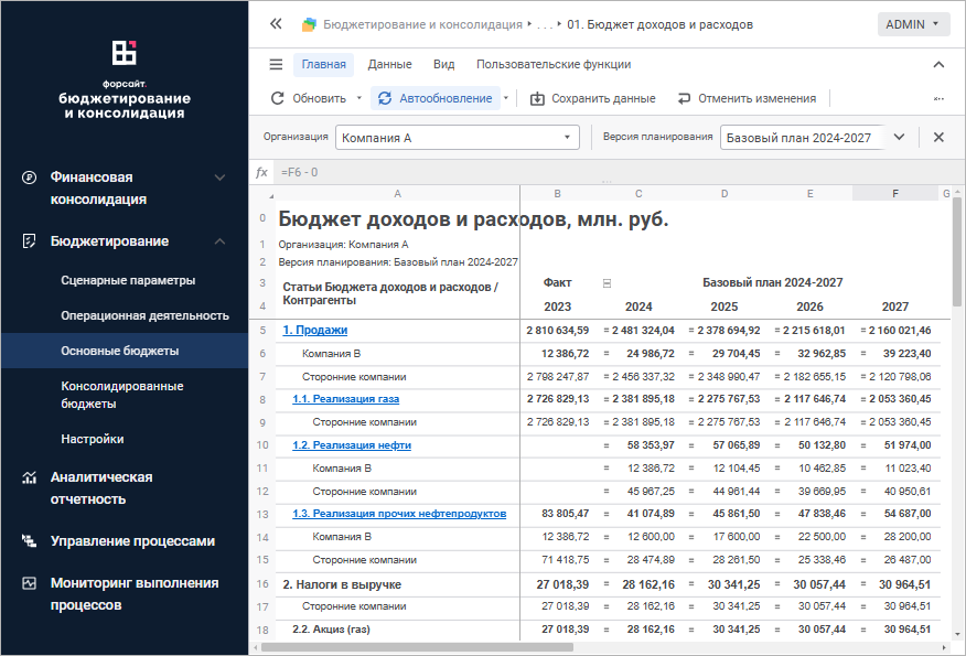 Программный продукт «Форсайт. Бюджетирование и консолидация» предназначен для комплексной автоматизации задач по планированию и бюджетированию, консолидации финансовой отчётности в компаниях с различной отраслевой направленностью и сложностью организационной структуры.