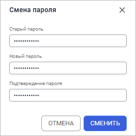 пароль» в раскрывающемся меню кнопки с наименованием пользователя