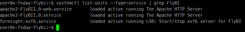 В терминале будет отображён список служб FlyBI с их состоянием.