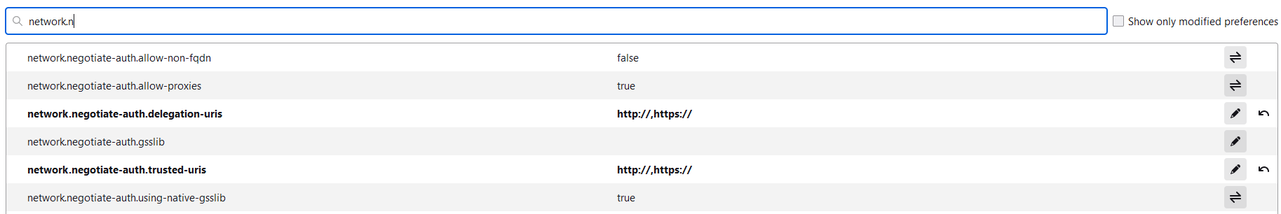 В результате в браузере Mozilla Firefox будет настроена аутентификация по протоколу GSSAPI.