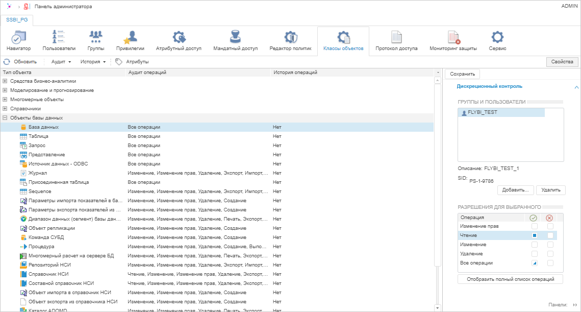 Примечание. При разделении ролей между администратором информационной безопасности и прикладным администратором раздел «Классы объектов» доступен только администратору информационной безопасности.