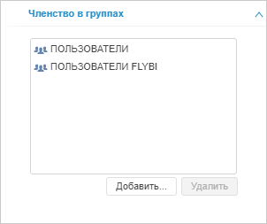 Для добавления пользователя в состав группы пользователей используйте вкладку «Членство в группах» на боковой панели «Свойства».