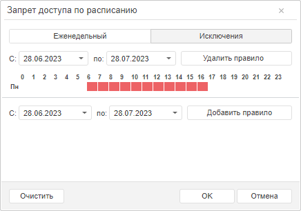доступа по расписанию