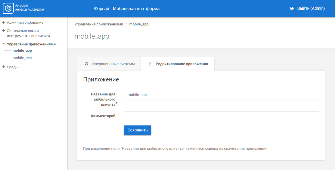 Change name of the server, to which application distribution files will be published. By default, application distribution files are downloaded to a mobile platform server, and direct links to application distribution file download are generated based on a domain name or IP address of a mobile platform server.