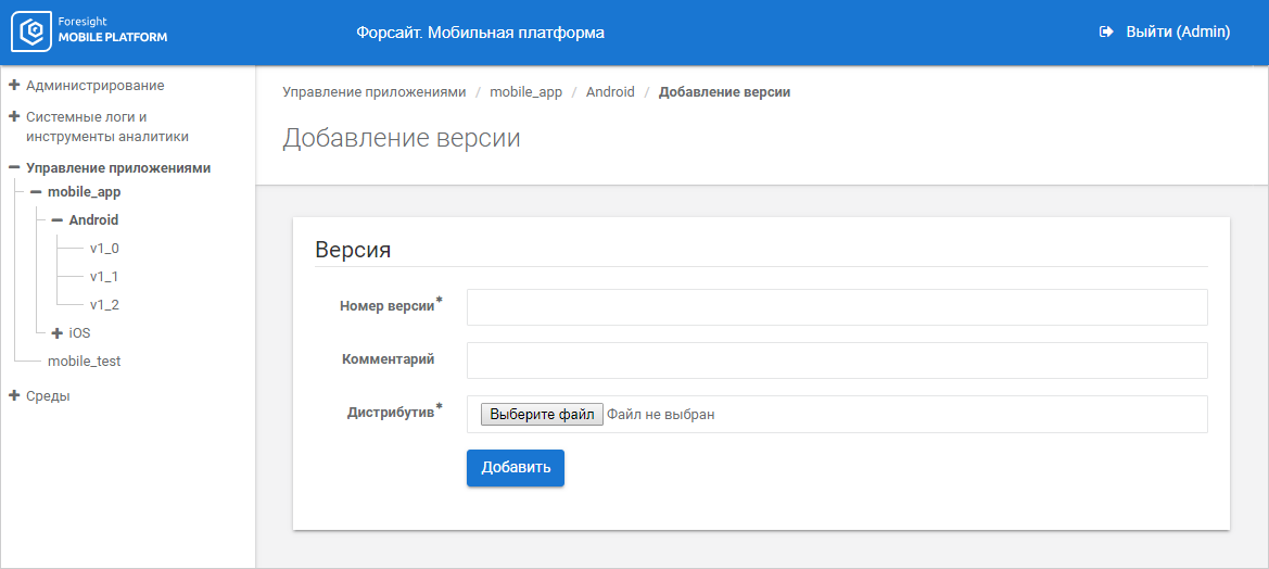 Version Number. Enter number of application distribution file version. The name must consist of Latin letters, numbers, underscores or hyphen. The box is mandatory.