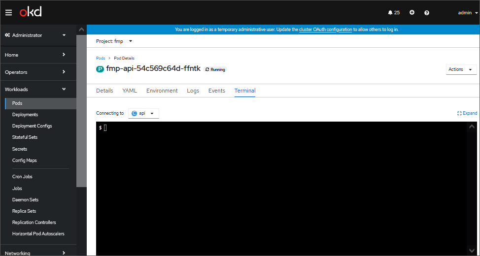 TIP. It is recommended to check the following pods: fmp-api, fmp-auth, fmp-dashboard, fmp-rpc, fmp-web.