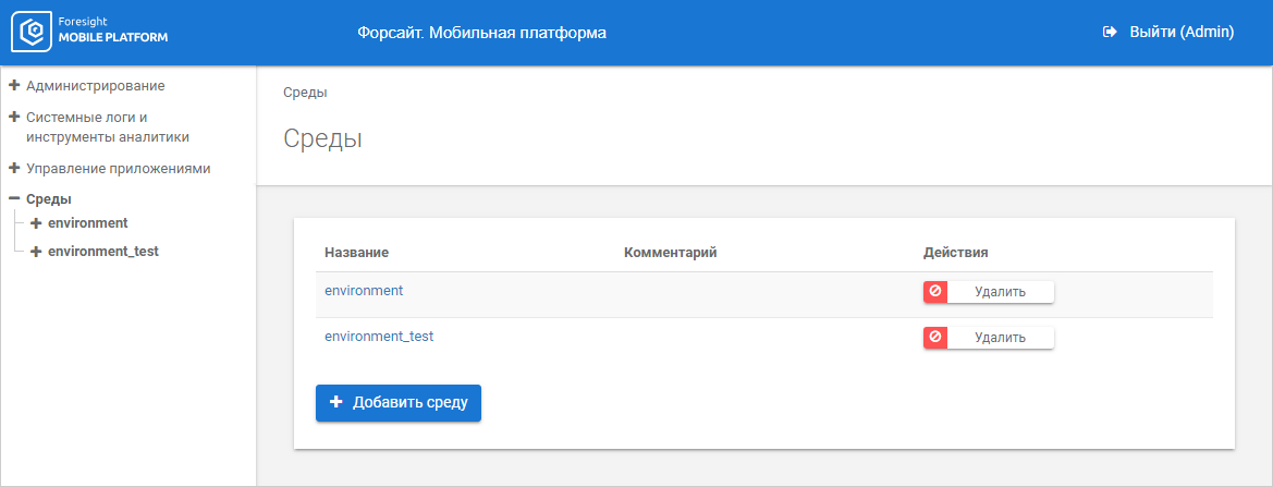 Each environment provides transferring settings inside the server or between platform servers, and unites projects that differentiate access to data sources.