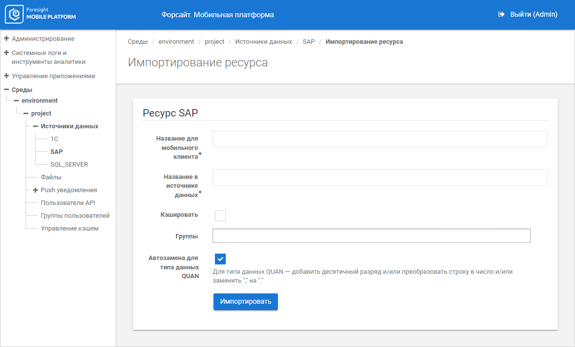 NOTE. On resource import, the value in the Mobile Client Name field must match with the repository identifier.