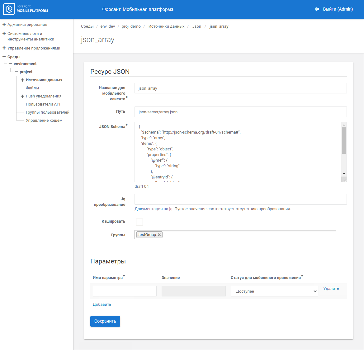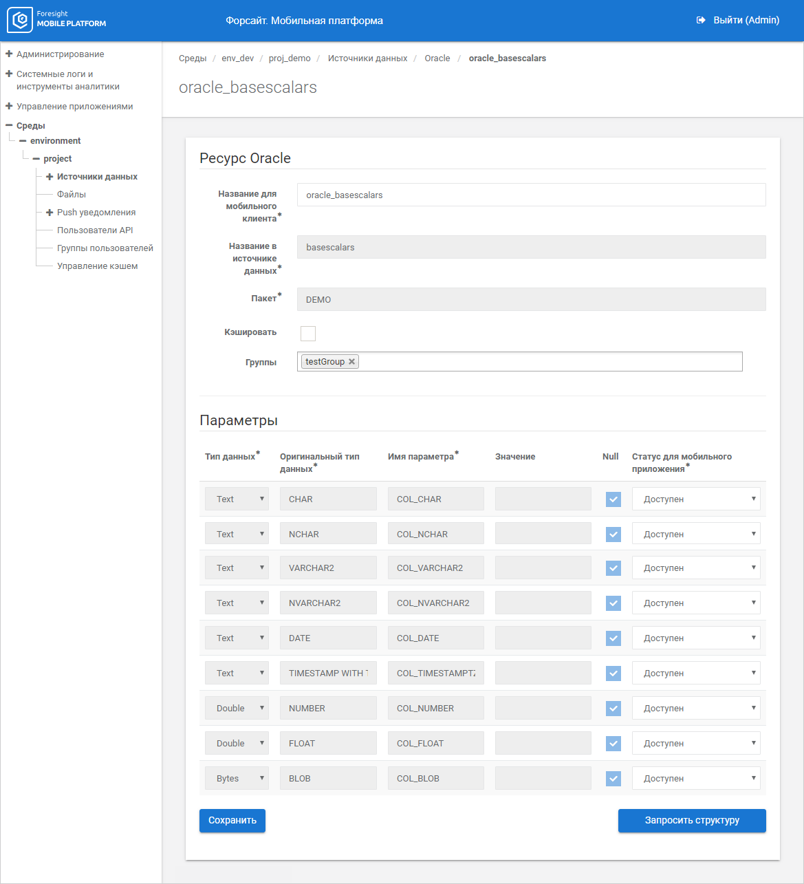 NOTE. Parameter data type in the mobile platform database, source data type in the data source, and parameter name cannot be changed.