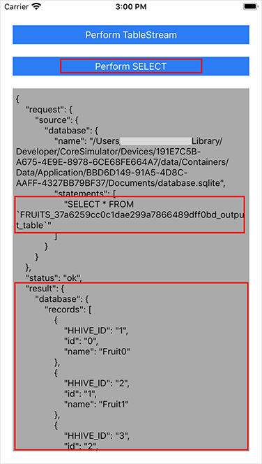 | getRecords (from:) | The method returns value of the "records" key from JSON result of SQL query to local database. Type of returned data: [[String: Any]]? |