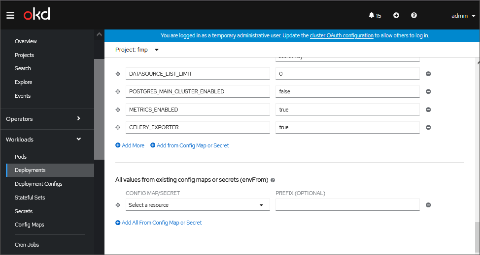 To set up the number of displayed credentials in the administrator console when using a fault-tolerant cluster based on OKD/OCP deployed during installation of cluster configuration of Foresight Mobile Platform: