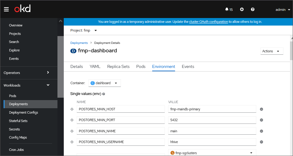 Select fmp-dashboard in the mobile platform project, for example, fmp: