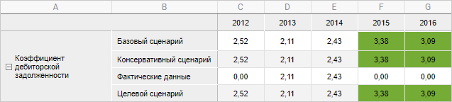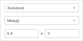 Например, отформатированы ячейки, значения которых находятся в диапазоне [0.4, 3]: