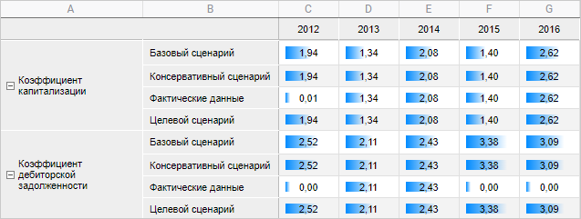 гистограммы. Отображает в ячейках гистограммы, соответствующие значению: чем больше значение, тем больше гистограмма. Например,