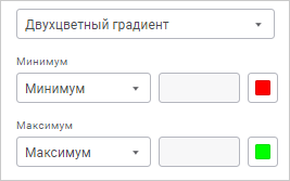 двухцветный градиент. Форматирует значения в ячейках на основе двух цветов: цвета для максимального значения и цвета минимального значения. Промежуточные цвета вычисляются автоматически.